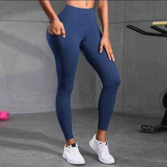 Women's High-Waisted Solid Color Yoga Pants With Pockets, Compression Leggings For Sports, Fitness, Running